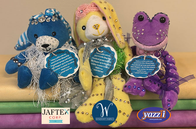 Just look for our colorful Hoppers (bunnies and frogs) lounging around participating Shop Hop stores. When you find one, follow the directions on the tag to get entered in the prize drawing. If you find a Hopper with friends, everyone in your group can enter. Successful hunters are allowed one entry per store.